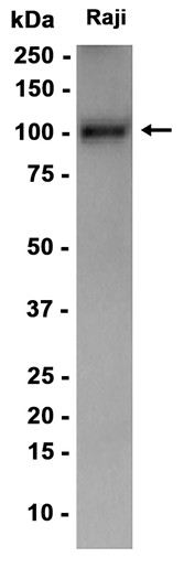 Western blot analysis of extracts from Raji cells using db15450 at 1:1000.