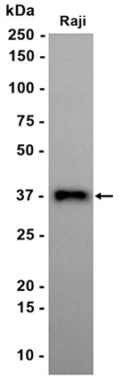Western blot analysis of extracts from Raji cells using db15860 at 1:1000.