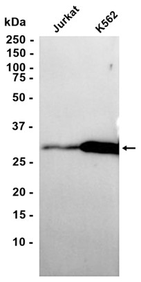 Western blot analysis of extracts from Jurkat, K562 cells using db16019 at 1:1000.