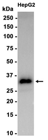 Western blot analysis of extracts from HepG2 cells using db16020 at 1:1000.