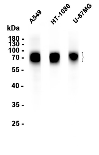 Western blot analysis of extracts from A549,HT-1080,U-87MG cells using