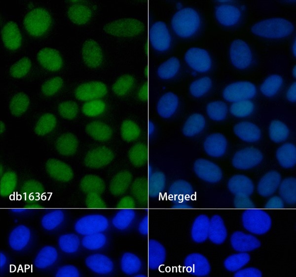 Immunofluorescence analysis of MCF-7 cells labelling hnRNP A1 with db16367.