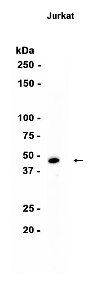 Western blot analysis of extracts from Jurkat cells using db23181 at 1:1000.