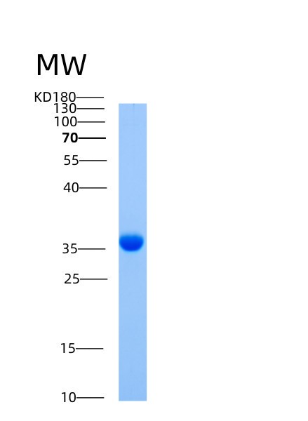 15% SDS PAGE(reduced) analysis of Recombinant Human AIMP1 (Aminoacyl tRNA synthetase complex-interacting multifunctional protein 1) Protein