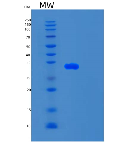 32.3 kDa (293aa), (SDS-PAGE under reducing conditions)