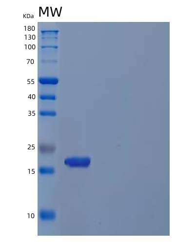 15% SDS PAGE(reduced) analysis of Recombinant Human Cyclin-Dependent Kinase 4 Inhibitor C/CDKN2C Protein(N-6His)
