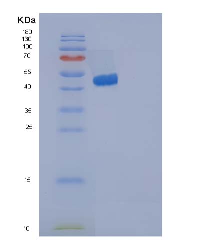 15% SDS PAGE(reduced) analysis of Recombinant Human IL-1RA / IL1RN Protein (Fc tag)