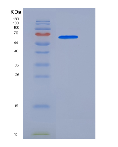 15% SDS PAGE(reduced) analysis of Recombinant Human p38 delta / MAPK13 Protein (GST tag)
