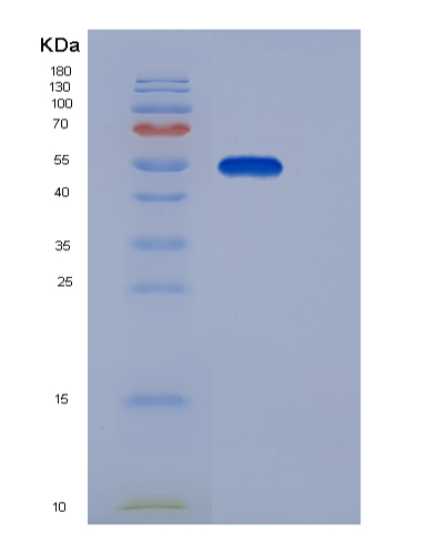 15% SDS PAGE(reduced) analysis of Recombinant Human EDEM2 / C20orf31 Protein (His tag)