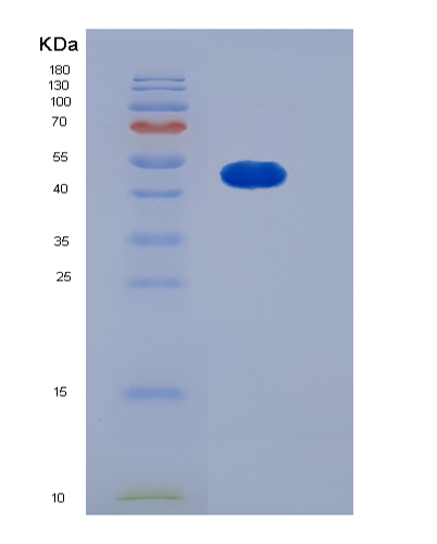15% SDS PAGE(reduced) analysis of Recombinant Human SMYD2 / KMT3C Protein (His tag)