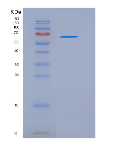 15% SDS PAGE(reduced) analysis of Recombinant Rat CD111 / Nectin-1 / PVRL1 Protein (Fc tag)