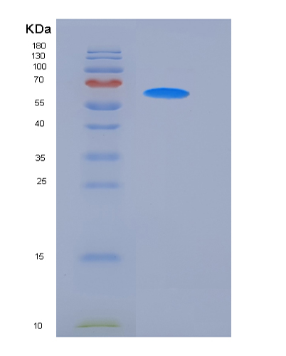 15% SDS PAGE(reduced) analysis of Recombinant Mouse CD14 Protein (His & Fc tag)