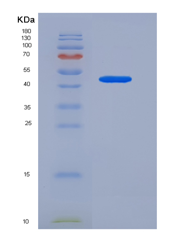 15% SDS PAGE(reduced) analysis of Recombinant Human SerpinB3 Protein (His Tag)