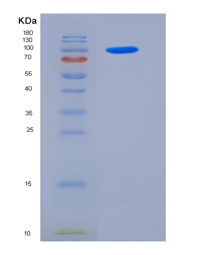 15% SDS PAGE(reduced) analysis of Recombinant Human Semaphorin 4A / SEMA4A / Semaphorin B Protein (Fc tag)