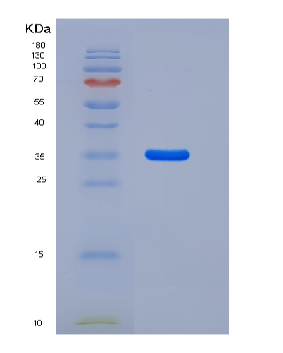 15% SDS PAGE(reduced) analysis of Recombinant Mouse Cathepsin H Protein (His Tag)