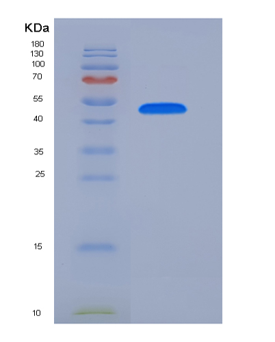 15% SDS PAGE(reduced) analysis of Recombinant Mouse IGFBP7 / IBP-7 Protein (Fc Tag)
