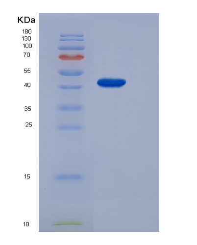 15% SDS PAGE(reduced) analysis of Recombinant Human Coagulation Factor VII / FVII / F7 Protein (His tag)