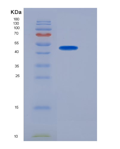 15% SDS PAGE(reduced) analysis of Recombinant Human SerpinA6 / CBG Protein (His tag)