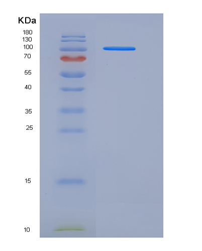 15% SDS PAGE(reduced) analysis of Recombinant Rat VEGFR2 / Flk-1 / CD309 / KDR Protein (Fc tag)