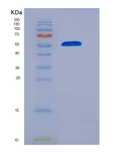15% SDS PAGE(reduced) analysis of Recombinant Rat FOLR1 / Folate Receptor 1 Protein (Fc tag)