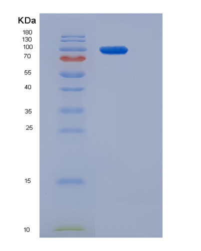 15% SDS PAGE(reduced) analysis of Recombinant Human Insulin Receptor / INSR / CD220 Protein (long isoform, His tag)