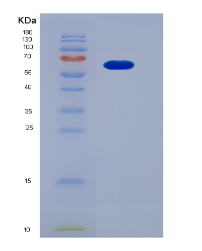 15% SDS PAGE(reduced) analysis of Recombinant Human FGFR4 / FGF Receptor 4 Protein (Fc tag)