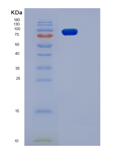 15% SDS PAGE(reduced) analysis of Recombinant Human/Rhesus HER4 / ErbB4 Protein (Fc tag)