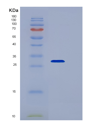 15% SDS PAGE(reduced) analysis of Recombinant Human RNASET2 Protein (His tag)