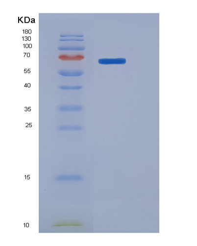 15% SDS PAGE(reduced) analysis of Recombinant Human ROR1 Protein (aa 453-783, His & GST tag)
