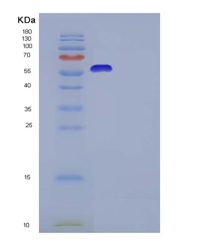 15% SDS PAGE(reduced) analysis of Recombinant Human IL13RA2 / IL13R Protein (His & Fc tag)