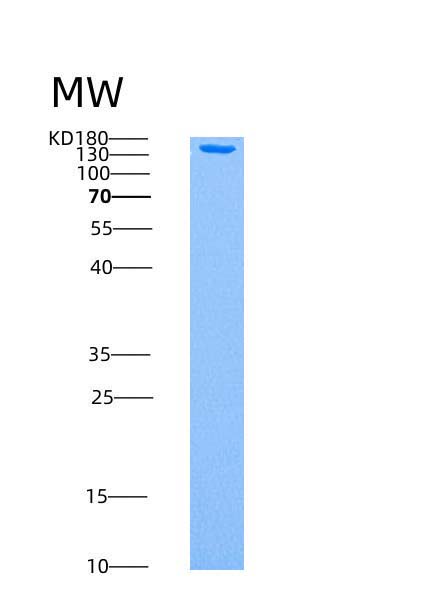15% SDS PAGE(reduced) analysis of Recombinant Human AMPK (G1/B1/A2) Heterotrimer Protein