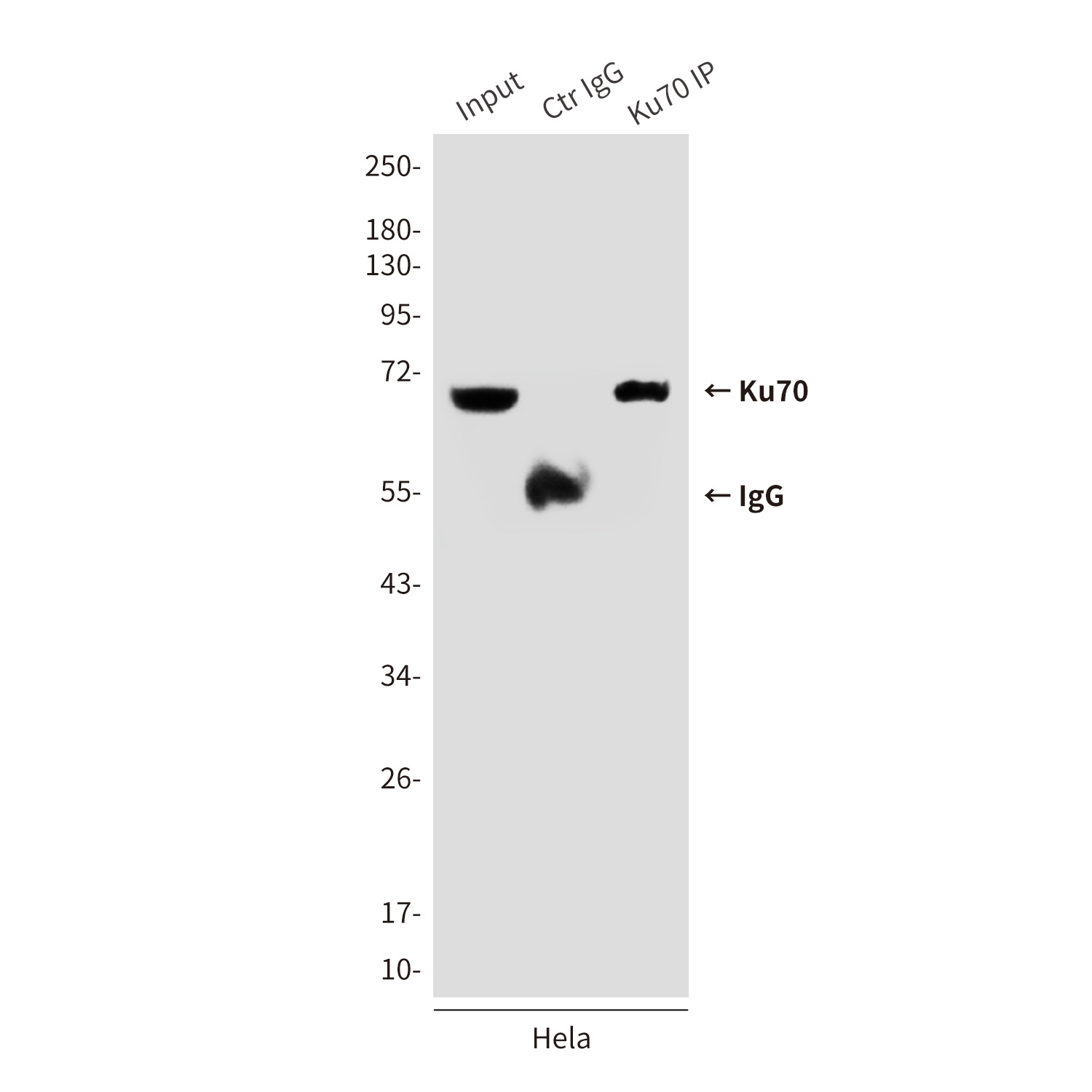 Immunoprecipitation analysis of Ku70 (7B1) in Hela lysates using Ku7 antibody.
