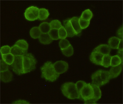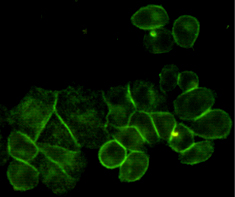 Immunocytochemistry analysis of EGFR (6H11) in HeLa using EGFR antibody.