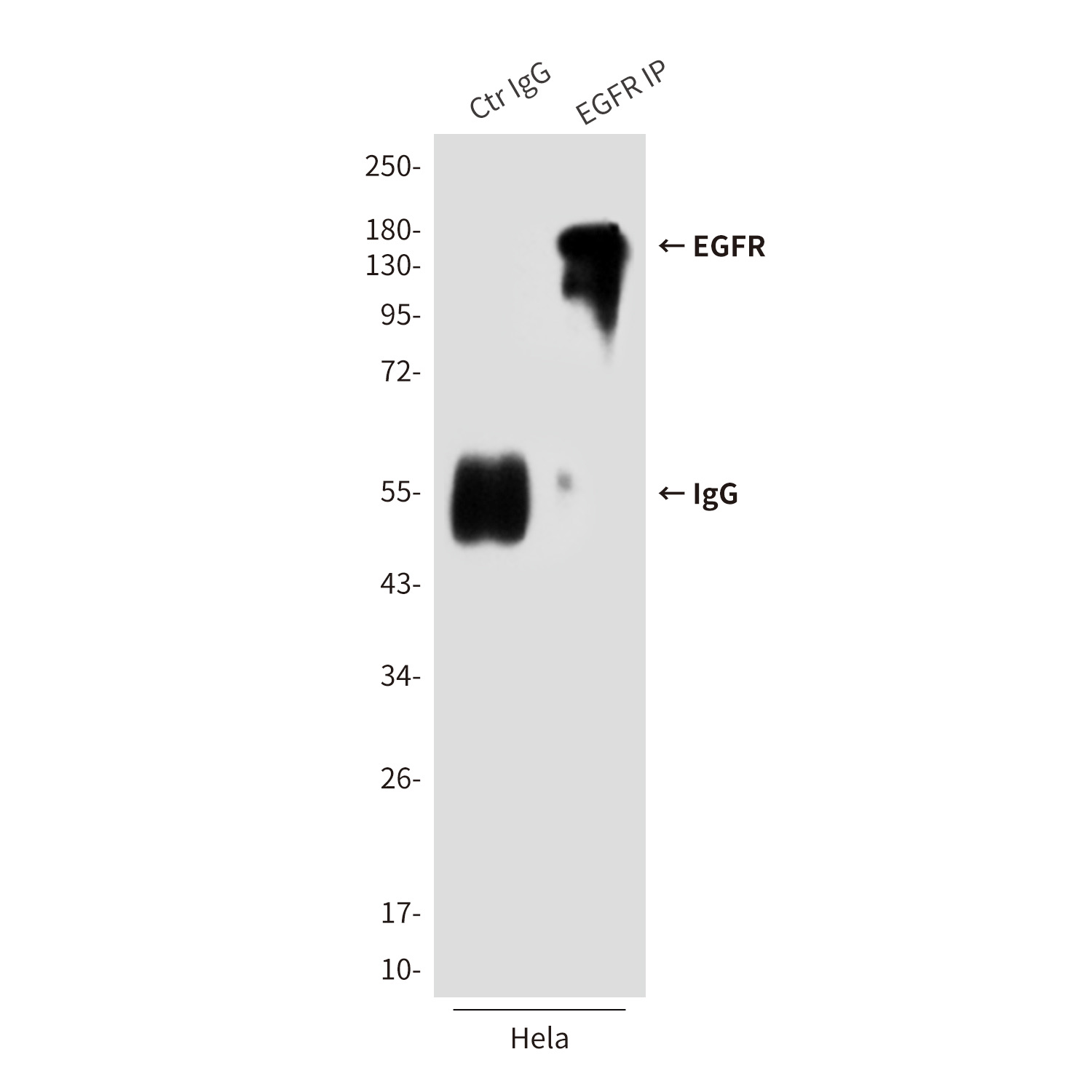 Immunoprecipitation analysis of EGFR (6H11) in Hela lysates using EGFR antibody.