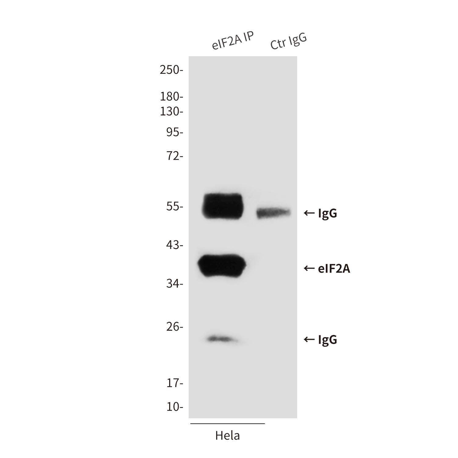 Immunoprecipitation analysis of eIF2A (2E4F5) in Hela lysates using eIF2α antibody.